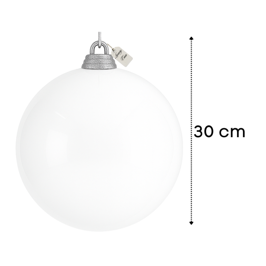 White Christmas Bauble Ornament – 30 cm (Glossy Shatterproof Giant Decoration)