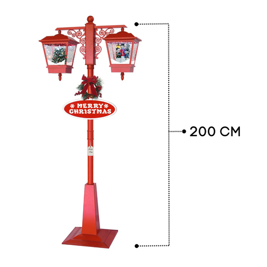 Red Christmas Lamp Post with Dual Lanterns & Snow Scene